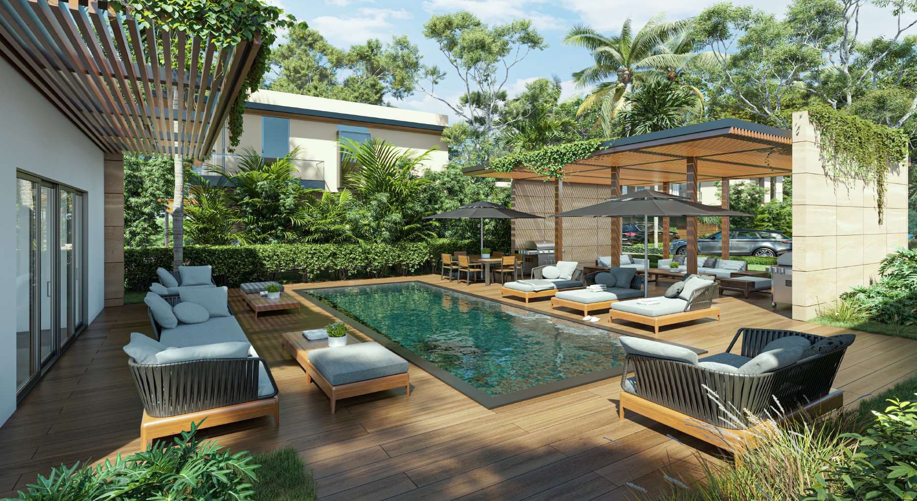 Un conjunto de 44 residencias tipo Low Budget Villas en Vista Cana, que buscan hacer sentir nuestro trópico en todos los sentidos. Conformadas con un primer nivel de planta libre, donde el área social se integra directamente con los jardines exteriores, son el protagonista de estas residencias. La utilización de aleros, ventilación cruzada, iluminación natural, doble altura y elementos que proporcionan sombra, tanto en habitaciones como en cocina, sala, comedor, son parte de los factores importantes de estas residencias. Cabe destacar que el plan de